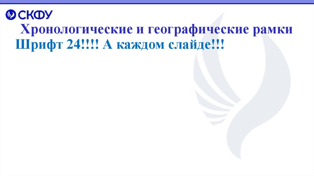 Шрифт 24!!!! А каждом слайде!!!7. Хронологические и географические рамки