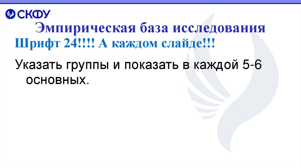 Шрифт 24!!!! А каждом слайде!!!8. Эмпирическая база исследования