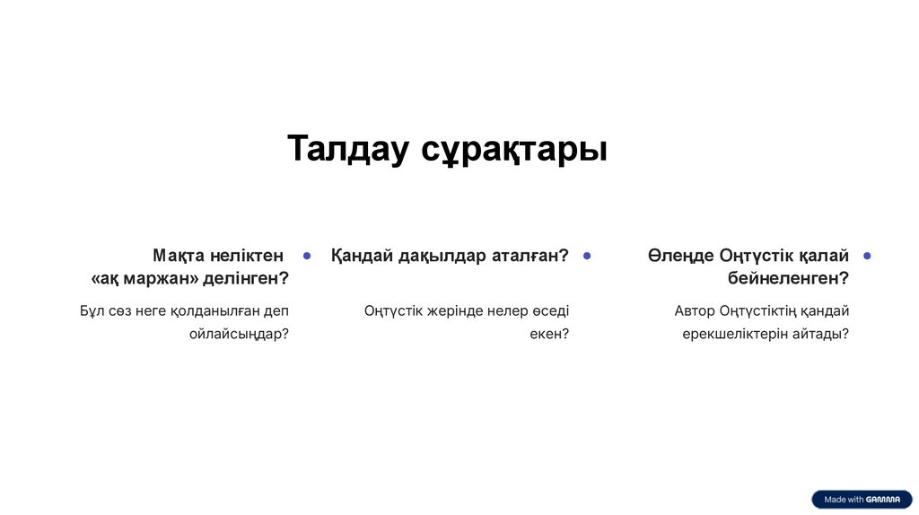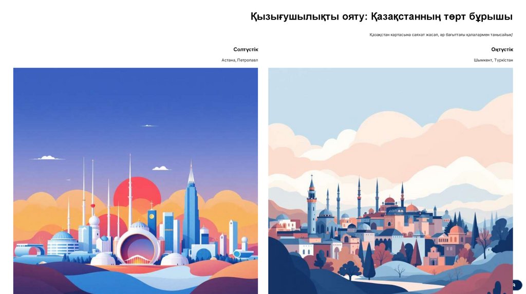 Қызығушылықты ояту: Қазақстанның төрт бұрышыҚазақстан картасына саяхат жасап, әр бағыттағы қалалармен танысайық!