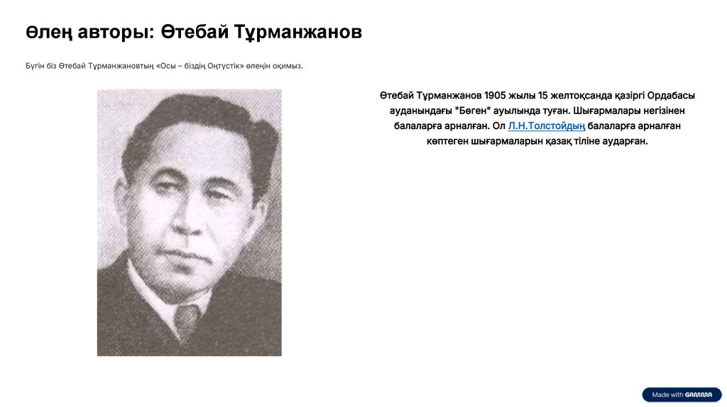 Өлең авторы: Өтебай ТұрманжановБүгін біз Өтебай Тұрманжановтың «Осы – біздің Оңтүстік» өлеңін оқимыз.
