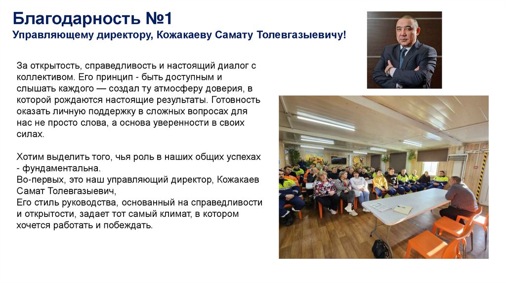 6. Благодарность №1 Управляющему директору, Кожакаеву Самату Толевгазыевичу!