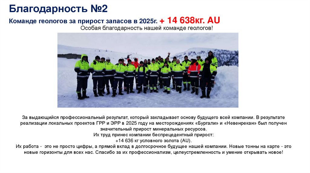 7. Благодарность №2 Команде геологов за прирост запасов в 2025г. + 14 638кг. AU