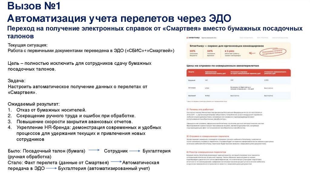 9. Вызов №1 Автоматизация учета перелетов через ЭДО Переход на получение электронных справок от «Смартвея» вместо бумажных
