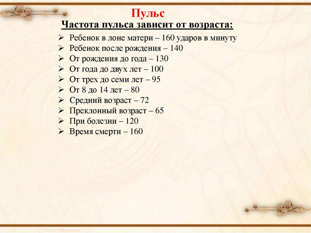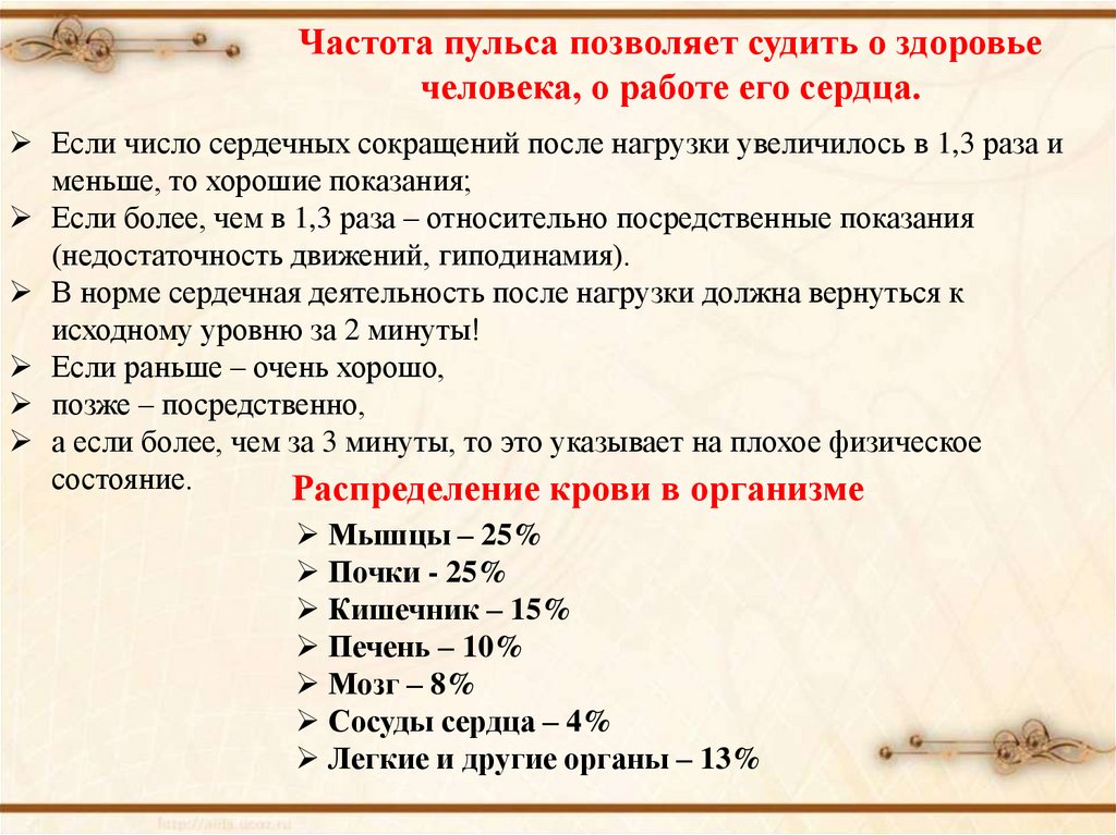 активным физическим нагрузкам пульс в состоянии покоя уменьшается).