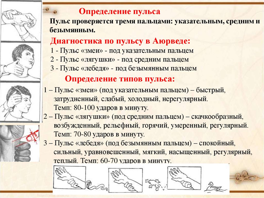 3 – Пульс «лебедя» (под безымянным пальцем) – спокойный,