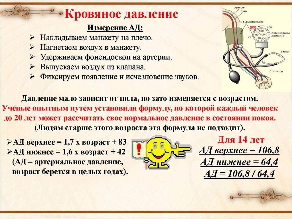 до 20 лет может рассчитать свое нормальное давление в состоянии покоя.