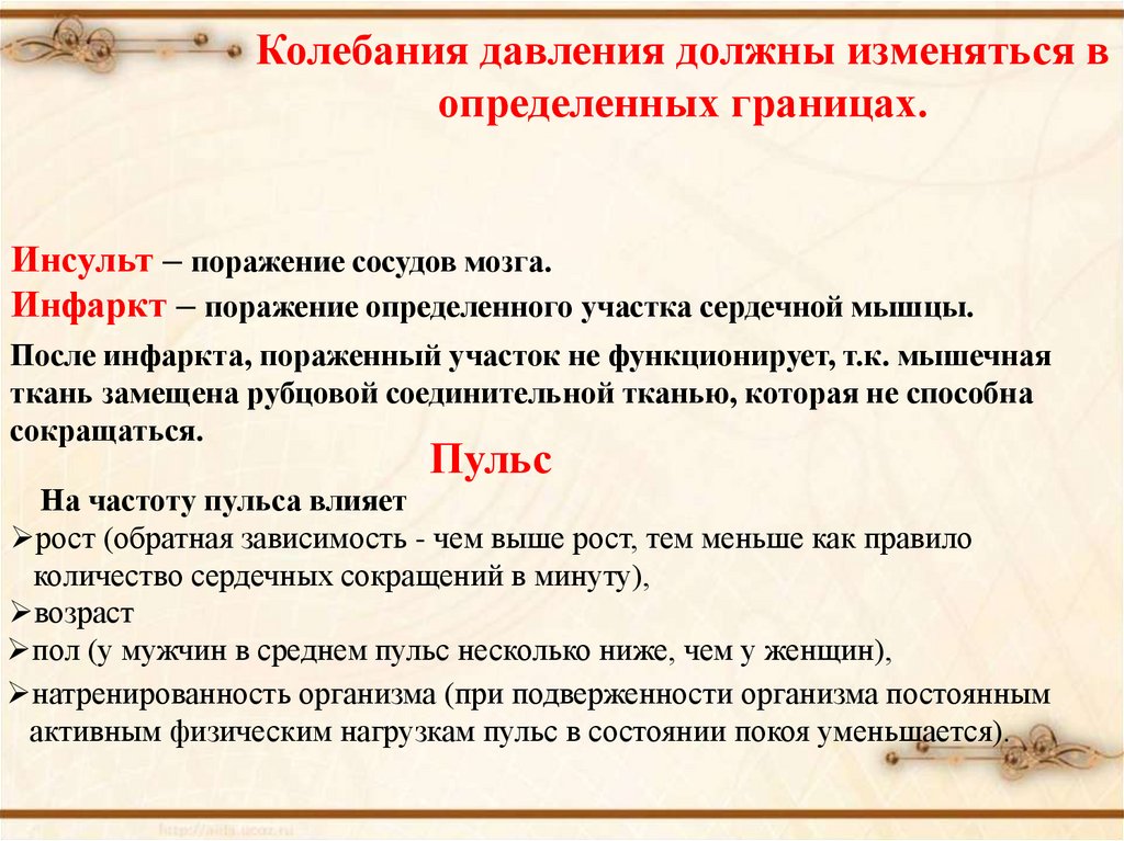 Инсульт – поражение сосудов мозга.Инфаркт – поражение определенного участка сердечной мышцы.
