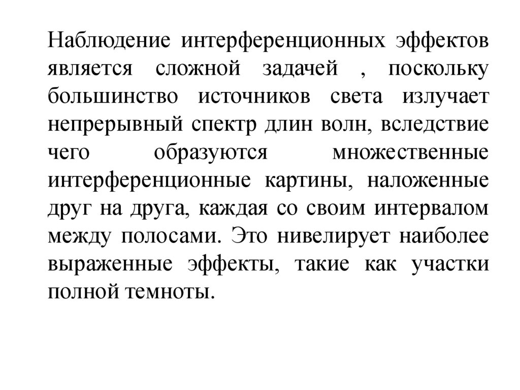 Наблюдение интерференционных эффектовявляется сложной задачей , поскольку