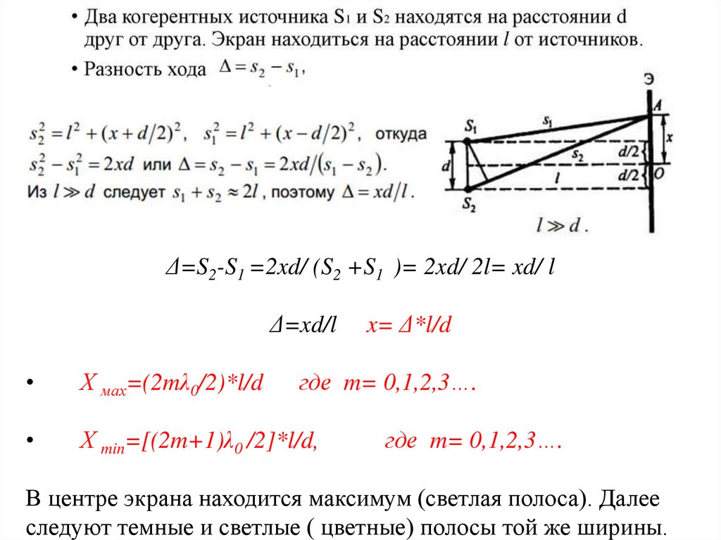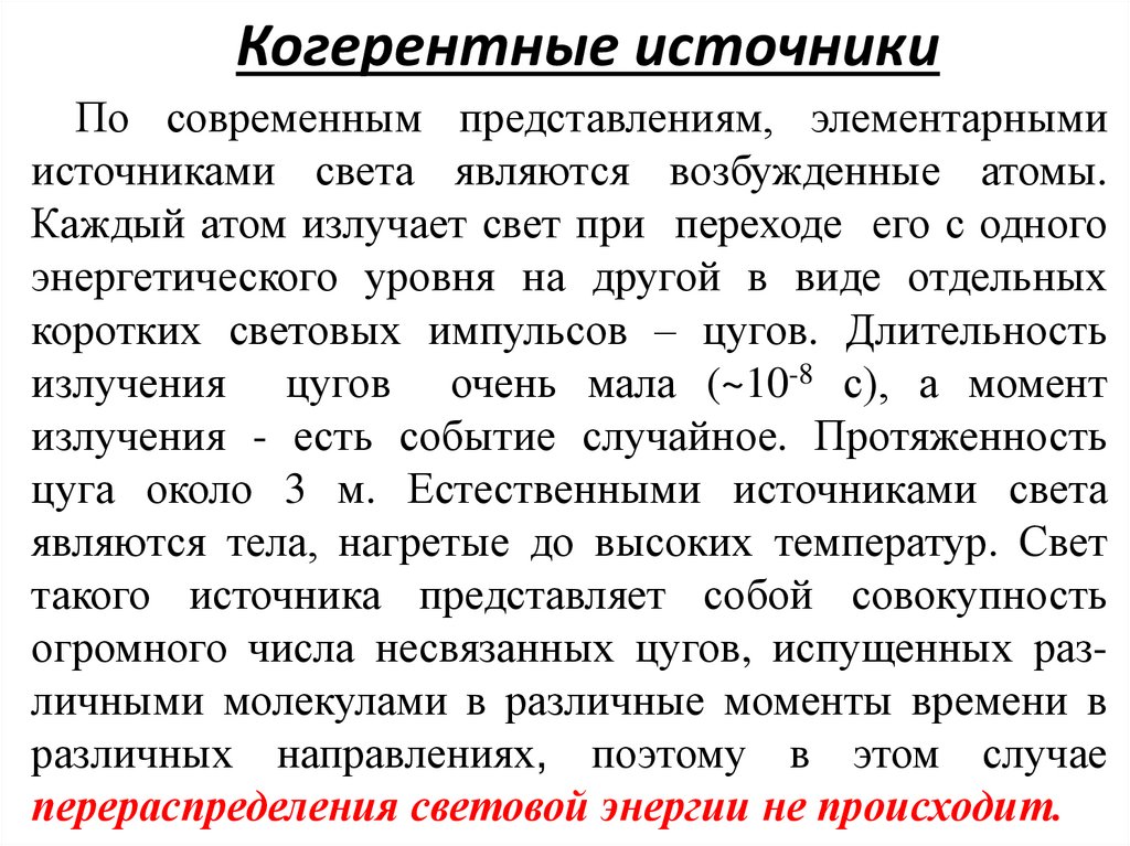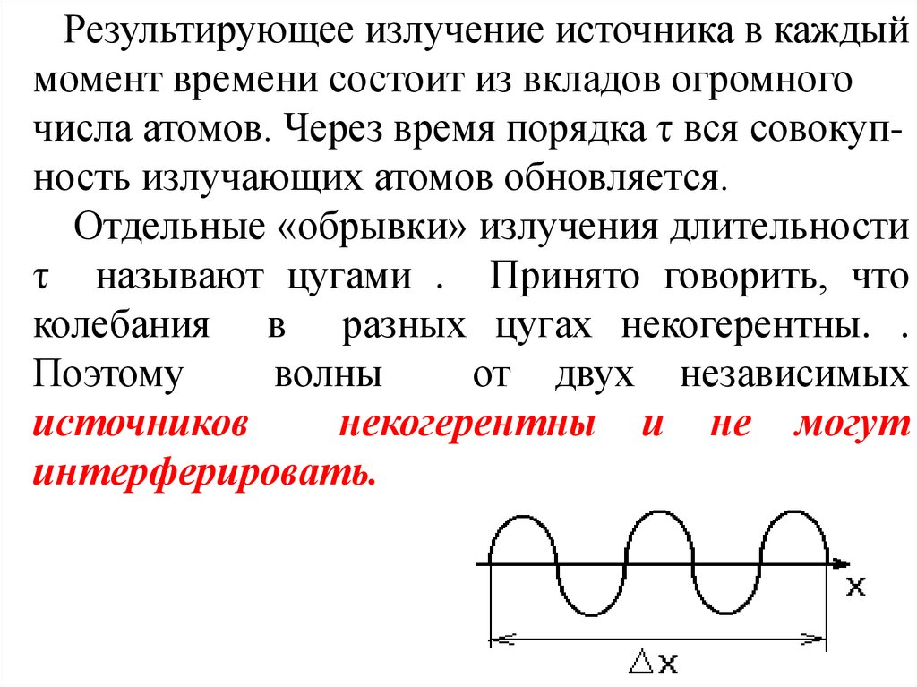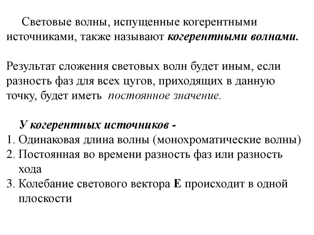 Световые волны, испущенные когерентнымиисточниками, также называют когерентными волнами.