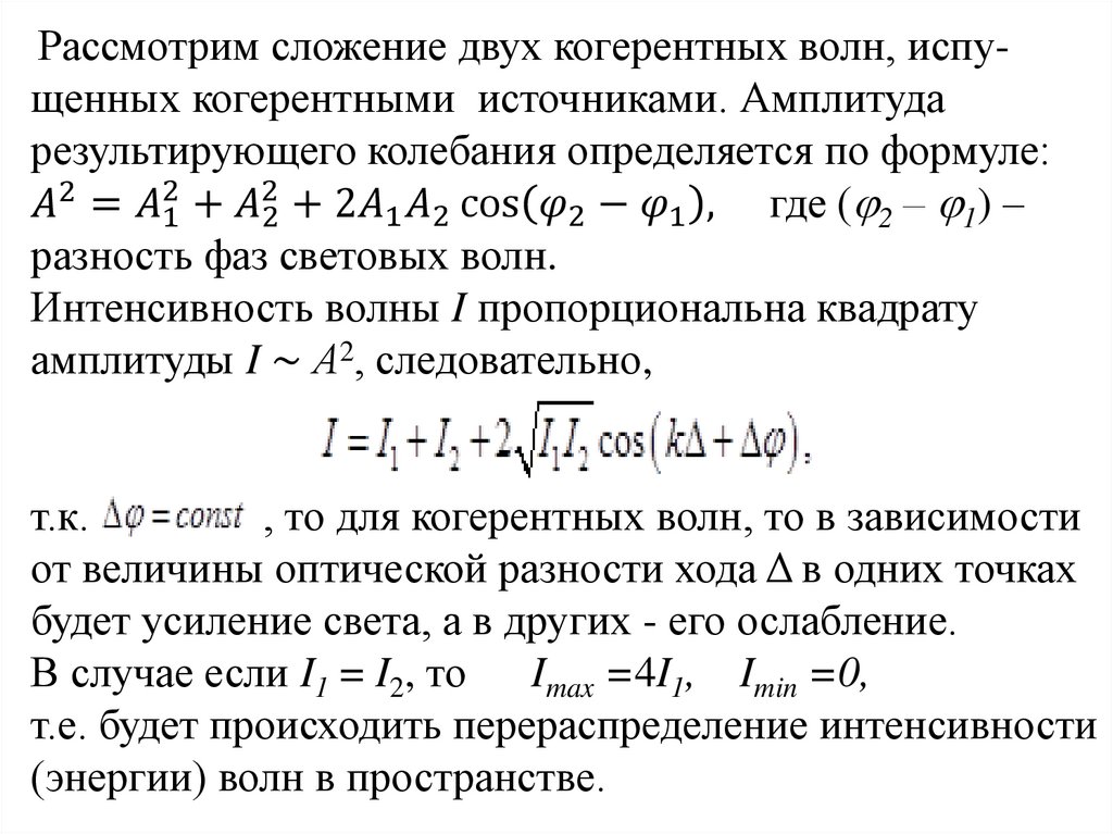 14. Световые волны, испущенные когерентными источниками, также называют когерентными волнами. Результат сложения световых волн