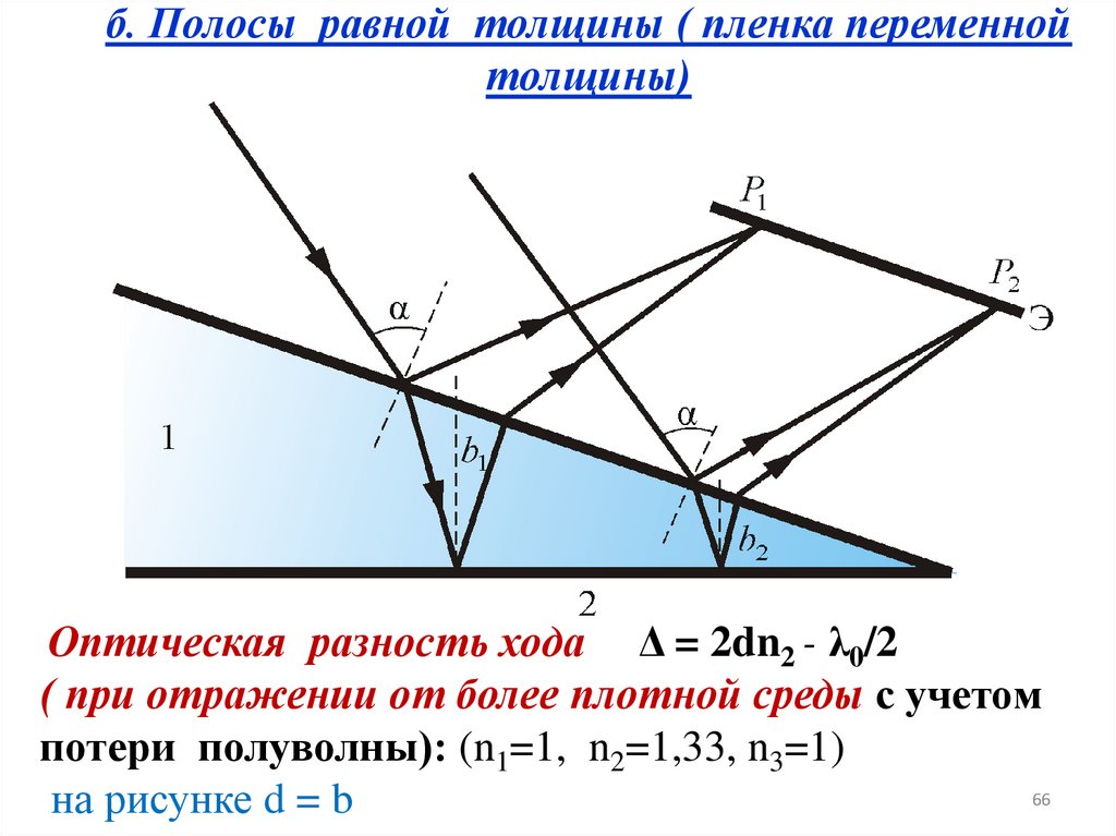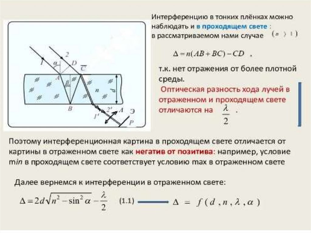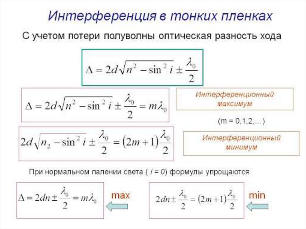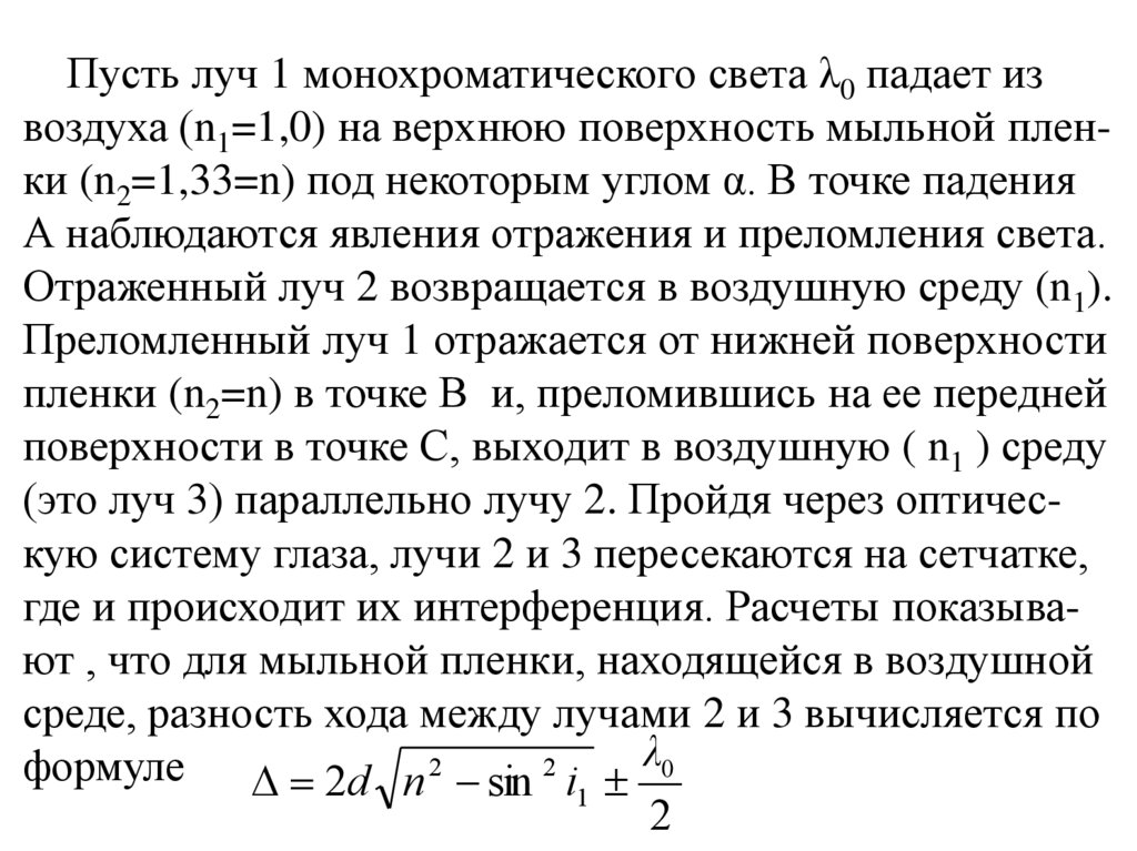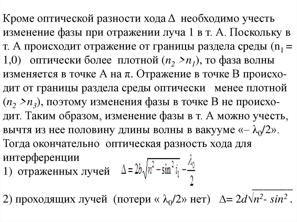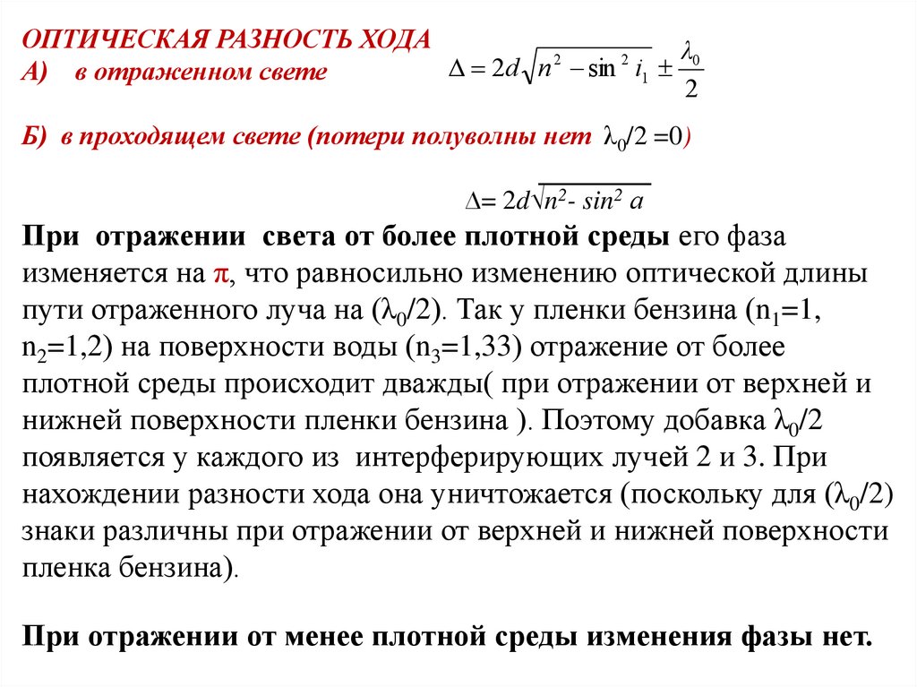 3) Разность фаз (∆ ) = 2- 1 = 2π(∆х)/λ = 2π(∆х)n/λn = 2π∆/λ0 ,