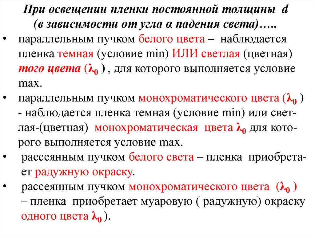 где λ – длина волны в данной среде , λ0 = λn, λ0 - длина световой