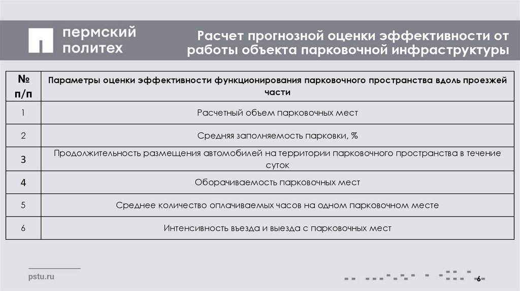 6. Расчет прогнозной оценки эффективности от работы объекта парковочной инфраструктуры