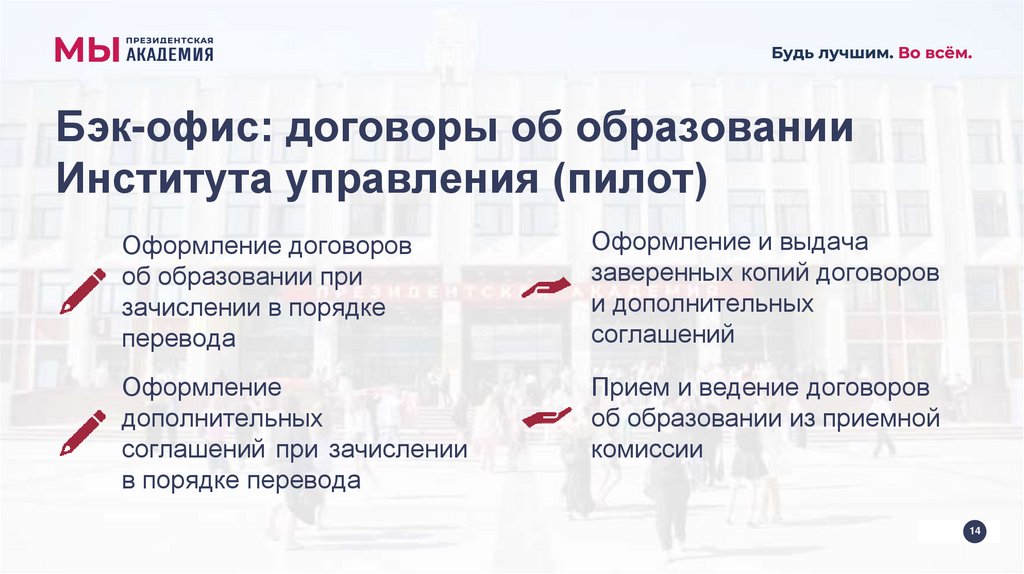 Бэк-офис: договоры об образованииИнститута управления (пилот)