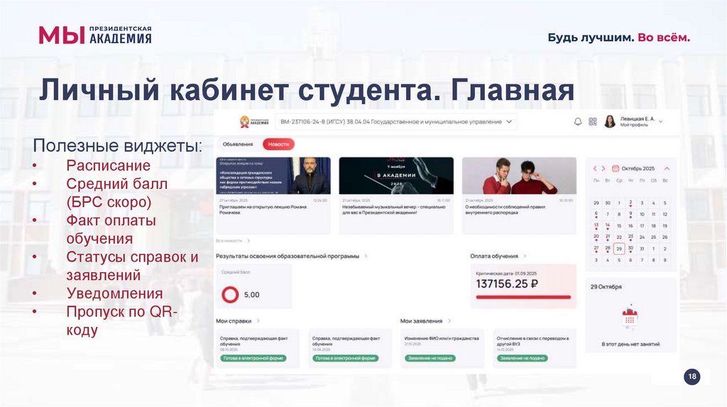 Личный кабинет студента. ГлавнаяПолезные виджеты: