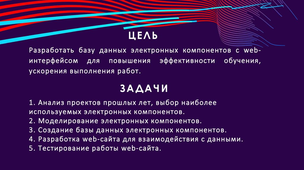 ЦЕЛЬРазработать базу данных электронных компонентов с webинтерфейсом для повышения эффективности обучения,
