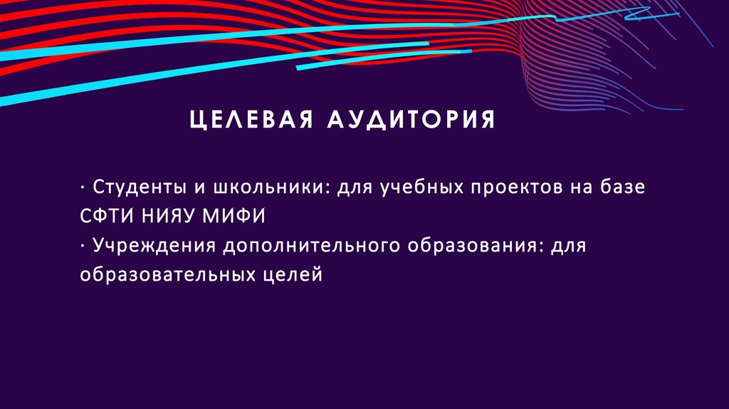 ЦЕЛЕВАЯ АУДИТОРИЯ· Студенты и школьники: для учебных проектов на базе