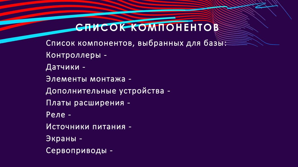 СПИСОК КОМПОНЕНТОВСписок компонентов, выбранных для базы :