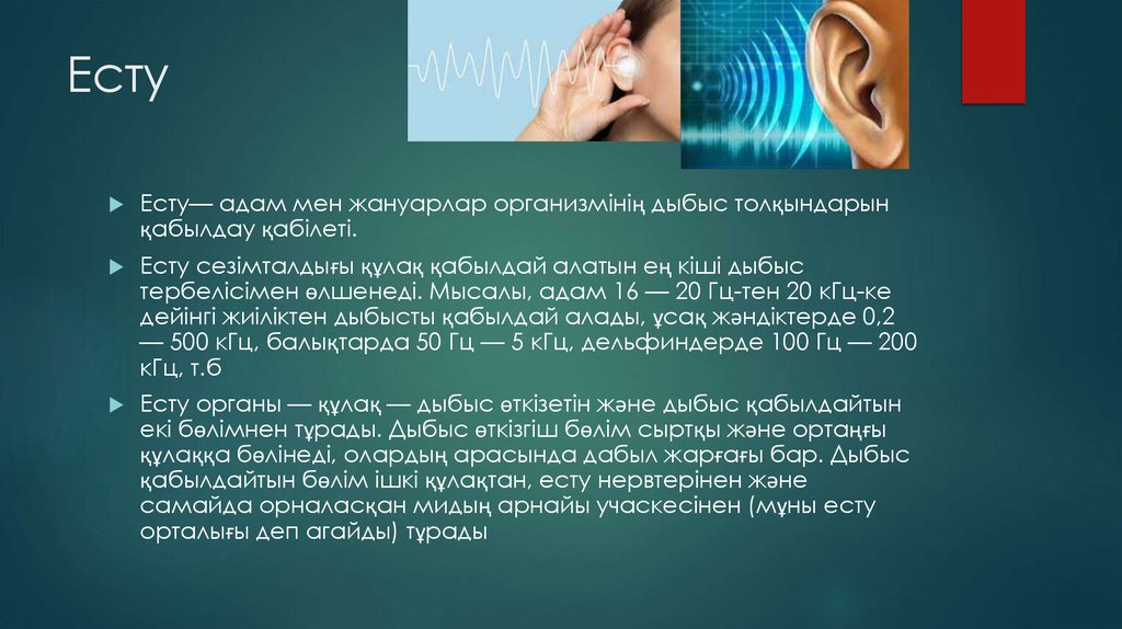 Есту органы — құлақ — дыбыс өткізетін және дыбыс қабылдайтын