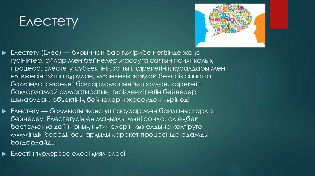 Елестету (Елес) — бұрыннан бар тәжірибе негізінде жаңатүсініктер, ойлар мен бейнелер жасауға саятын психикалық