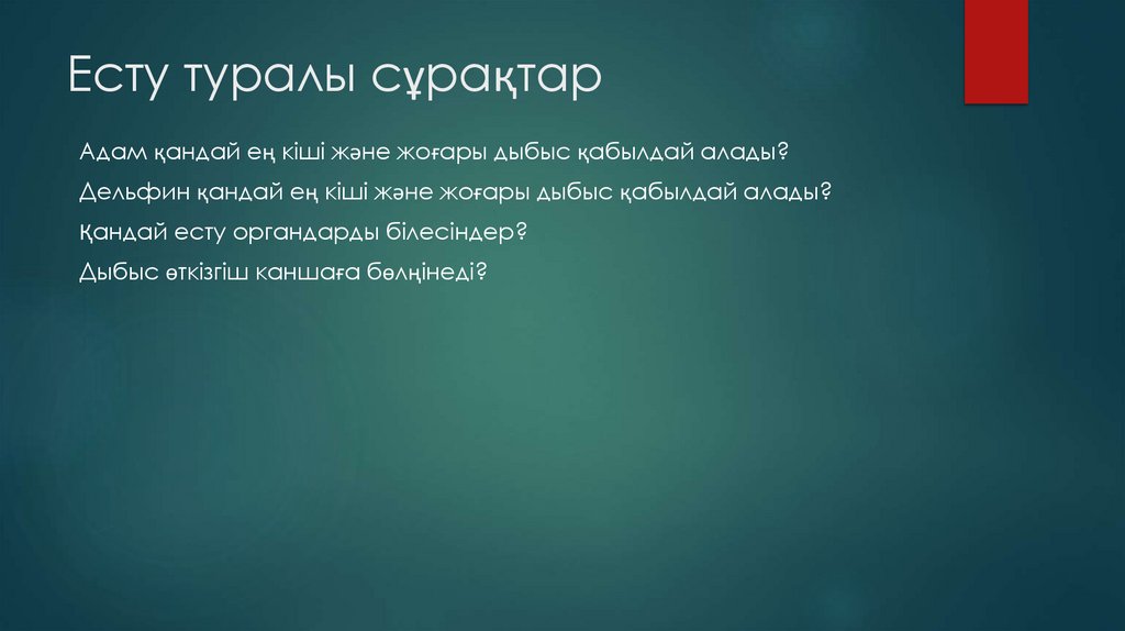 Адам қандай ең кіші және жоғары дыбыс қабылдай алады?Дельфин қандай ең кіші және жоғары дыбыс қабылдай алады?