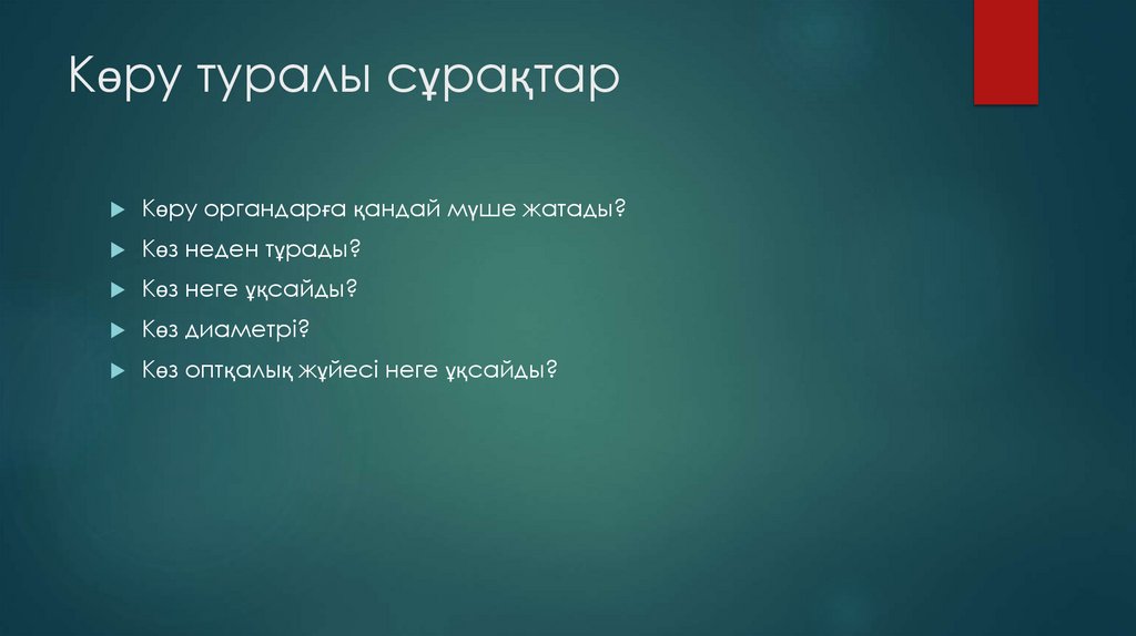 Көру органдарға қандай мүше жатады?Көз неден тұрады?