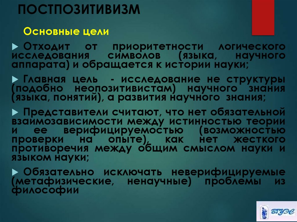 Принципы позитивизма:− Философское знание должно быть точным и