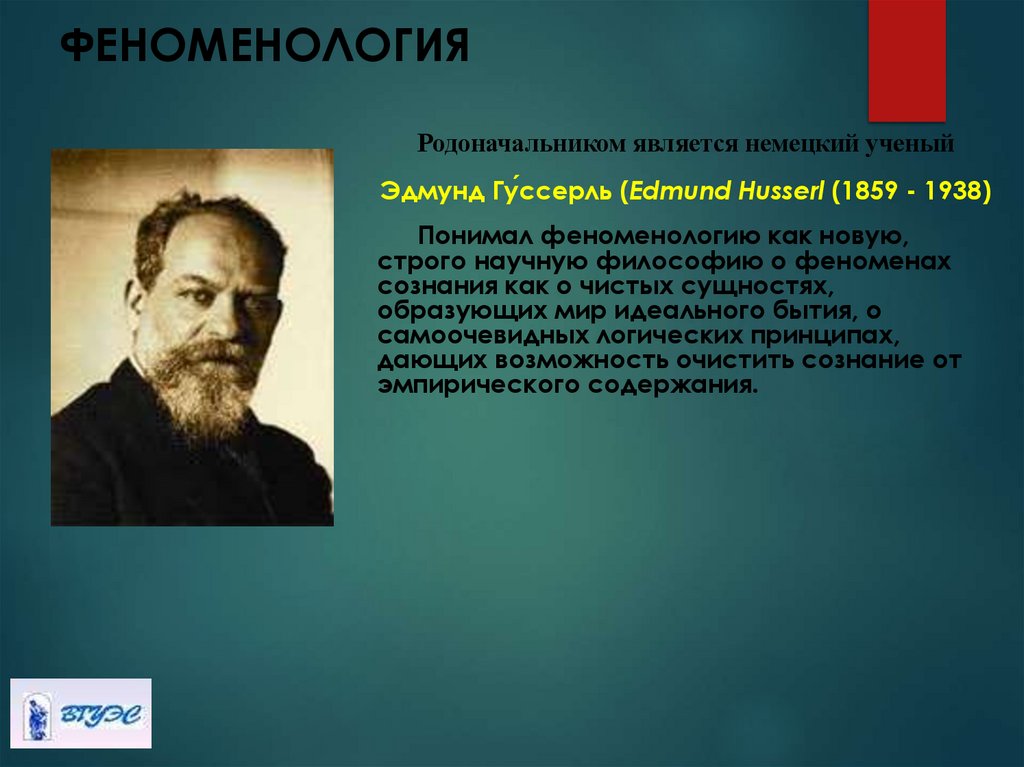 Родоначальником является немецкий ученыйЭдмунд Гу́ссерль (Edmund Husserl (1859 - 1938)