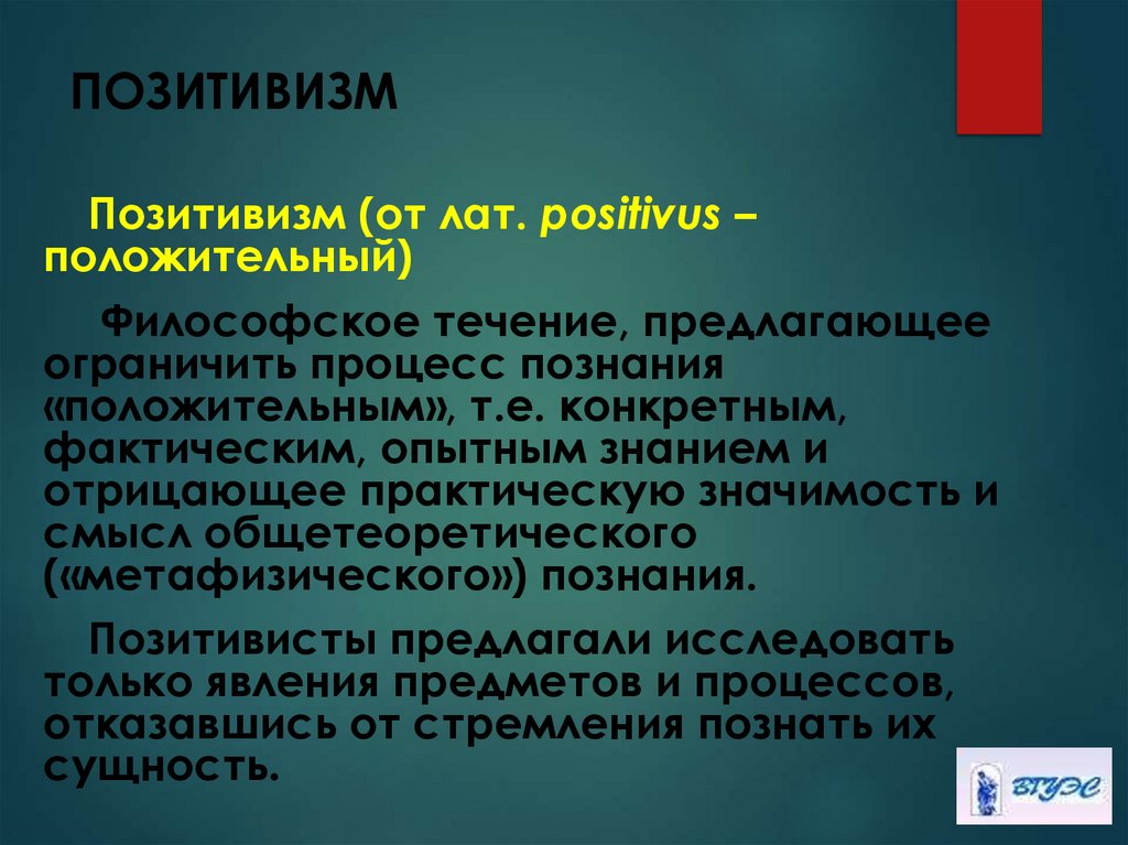 Позитивизм (от лат. positivus –положительный)