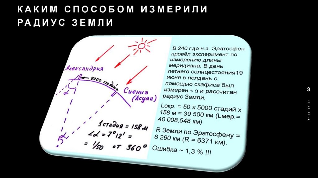 3. Каким способом измерили радиус земли