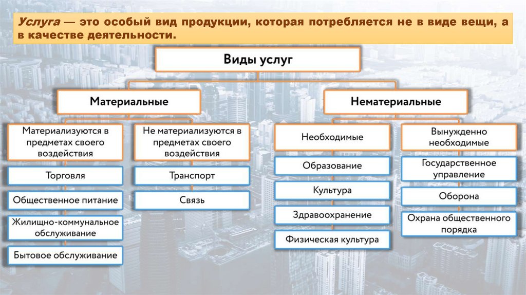 Услуга — это особый вид продукции, которая потребляется не в виде вещи, ав качестве деятельности.