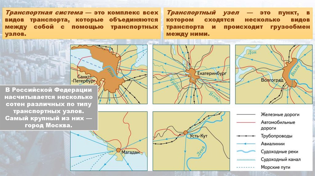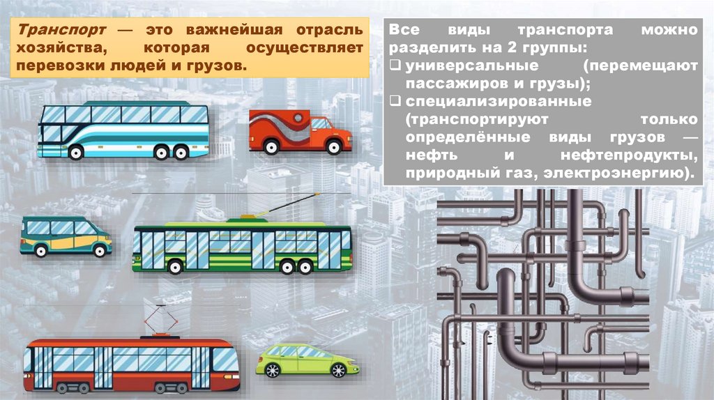 Транспортная система — это комплекс всехвидов транспорта, которые объединяются
