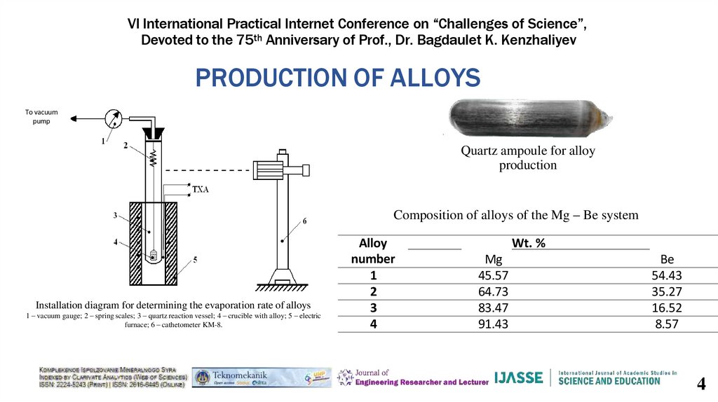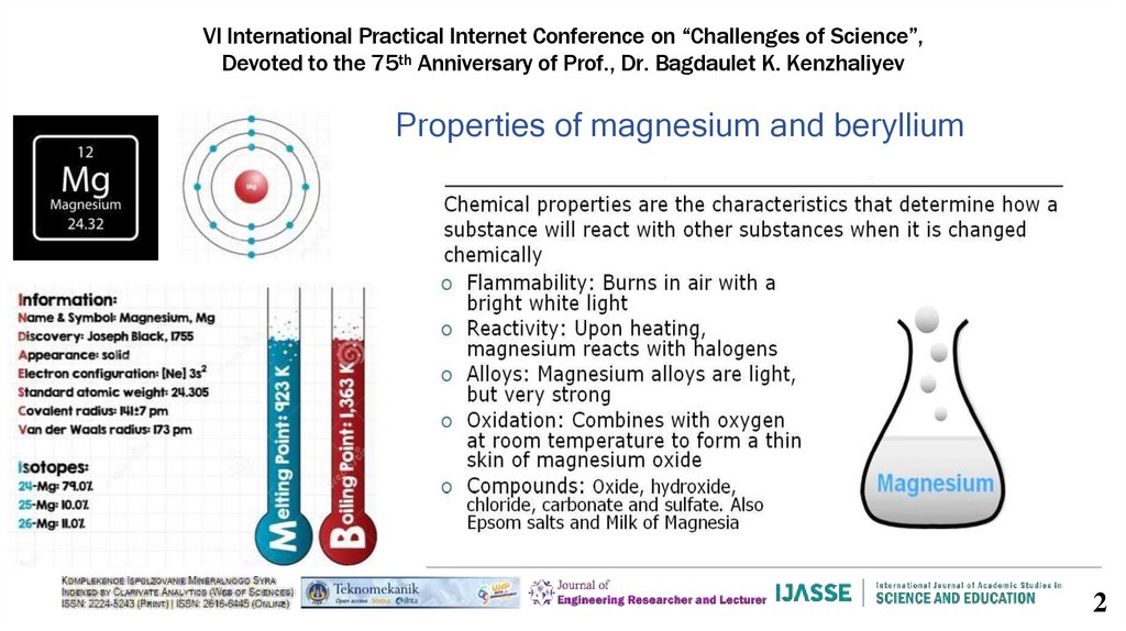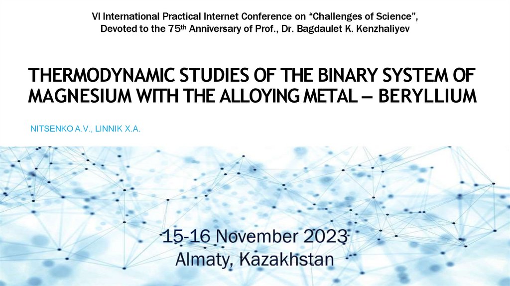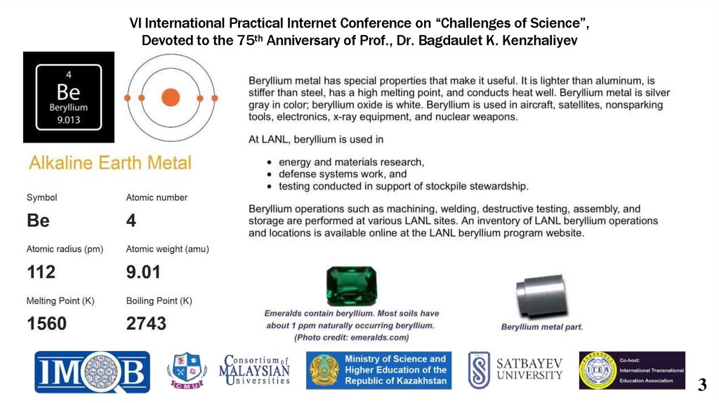 VI International Practical Internet Conference on “Challenges of Science”,Devoted to the 75th Anniversary of Prof., Dr. Bagdaulet K. Kenzhaliyev