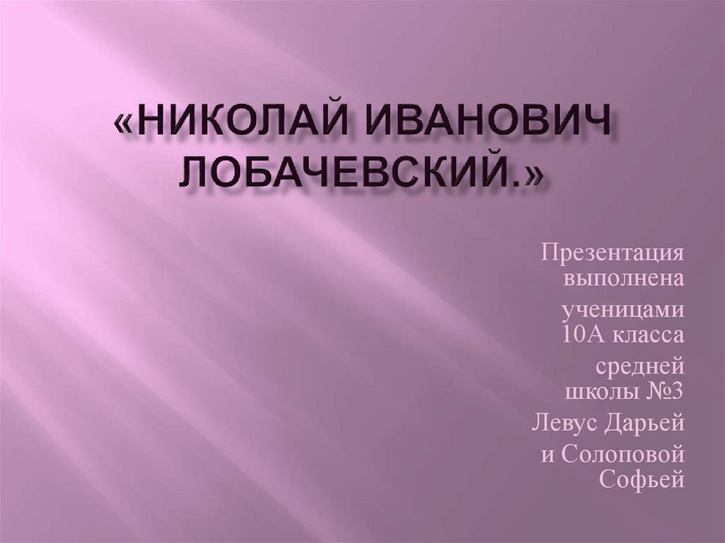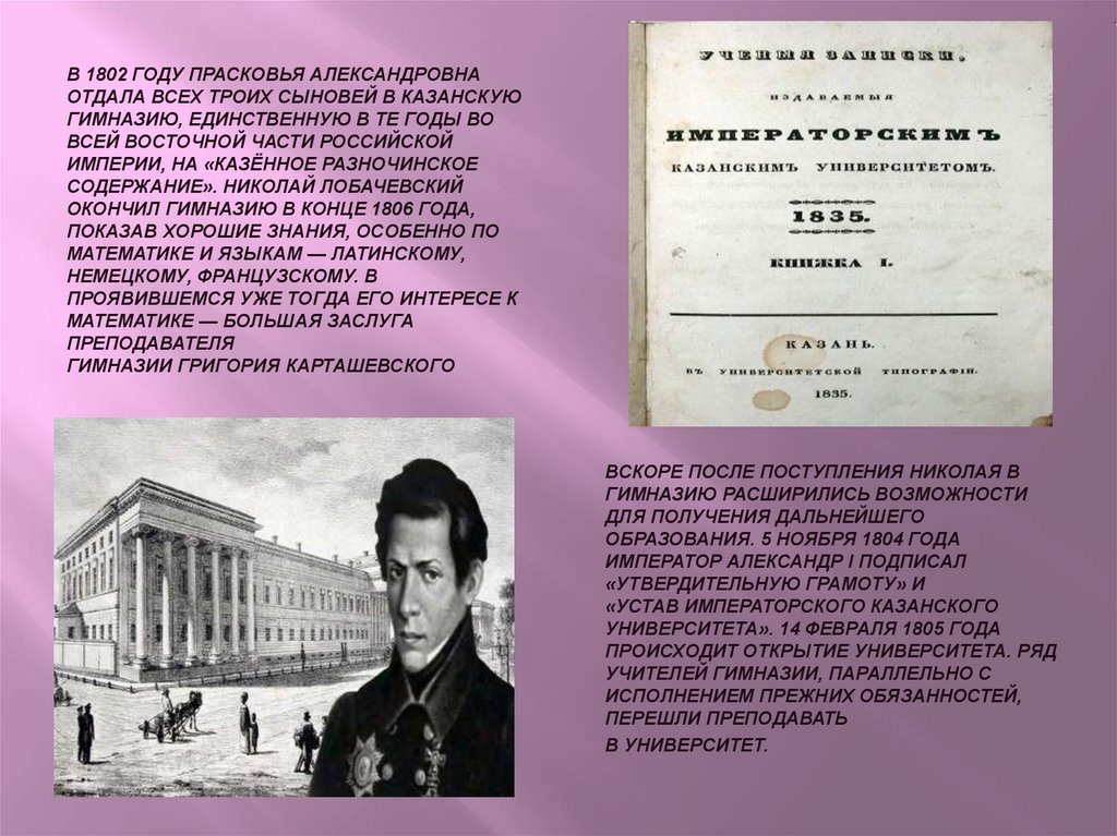 СОДЕРЖАНИЕ». НИКОЛАЙ ЛОБАЧЕВСКИЙ