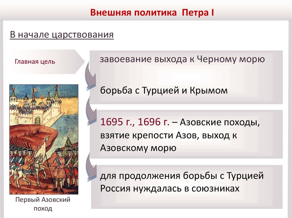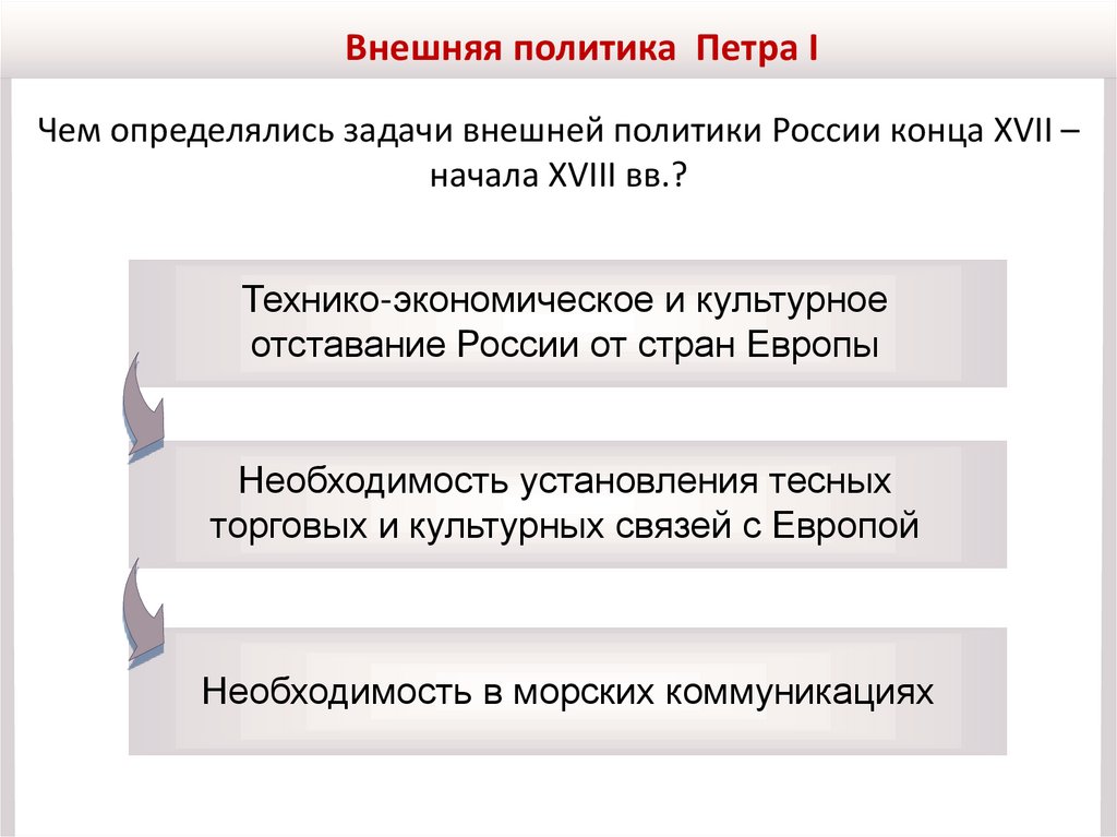Внешняя политика Петра IЧем определялись задачи внешней политики России конца XVII –