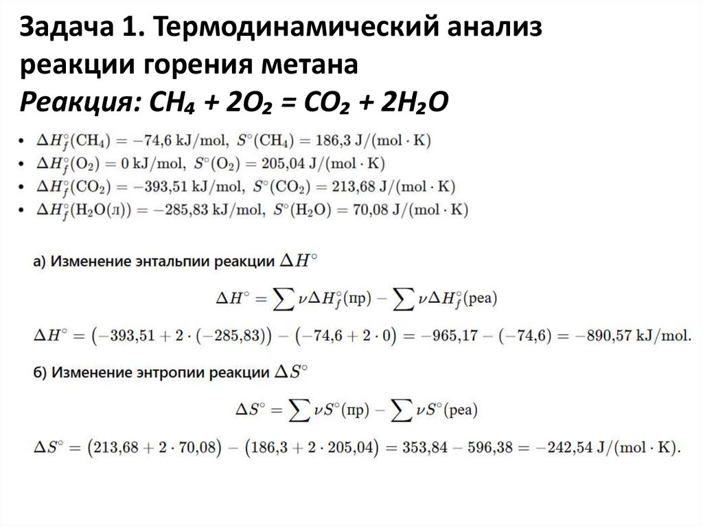 Задача 1. Термодинамический анализреакции горения метана