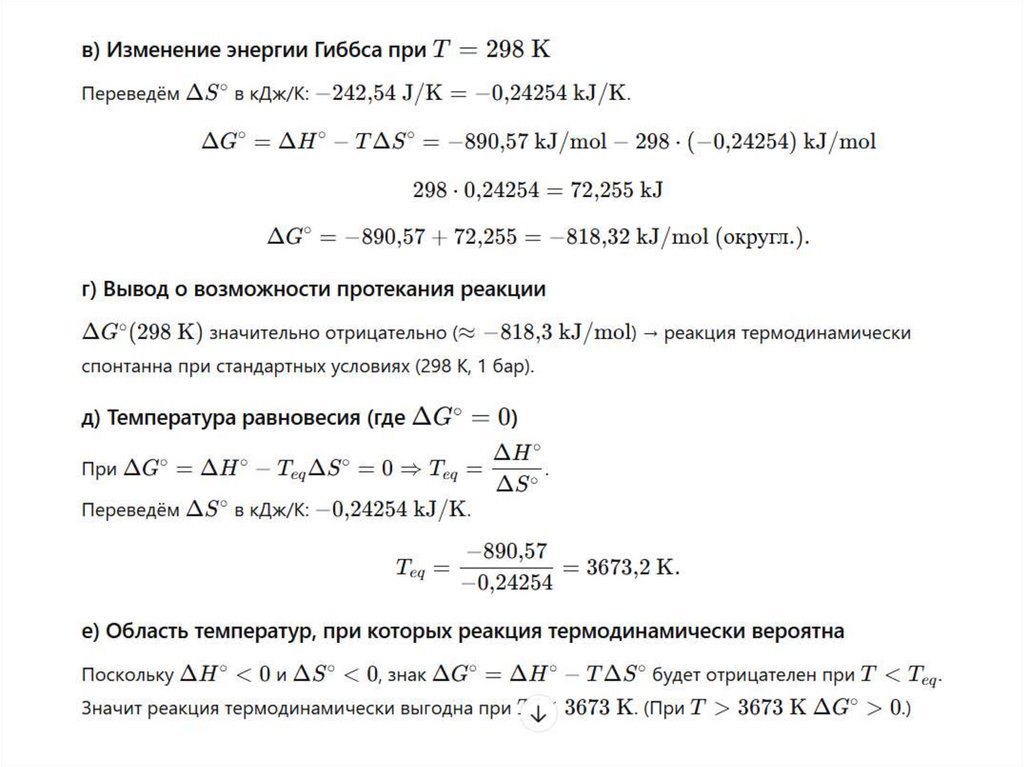 д) Рассчитайте температуру равновесия