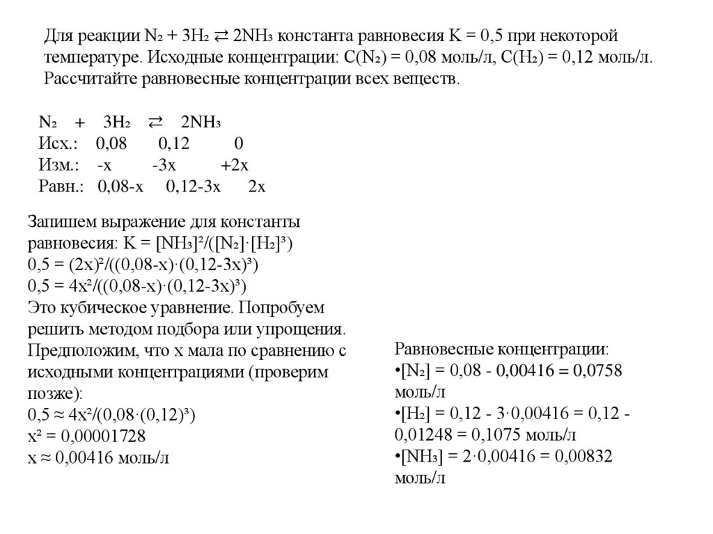 ЗАДАЧА 1. Синтез аммиакаУсловие: