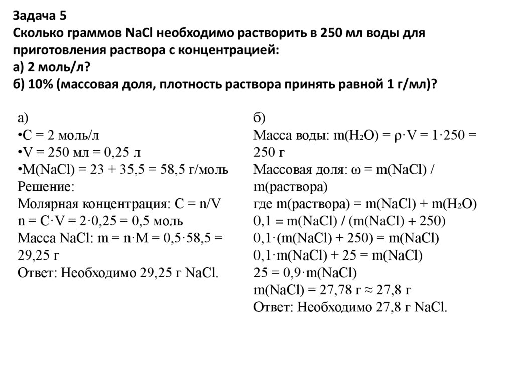 а) Приготовление 250 мл раствора 2 моль/л