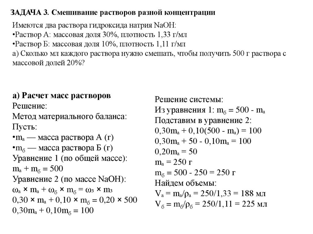 ЗАДАЧА 3. Смешивание растворов разной концентрацииИмеются два раствора гидроксида натрия NaOH: