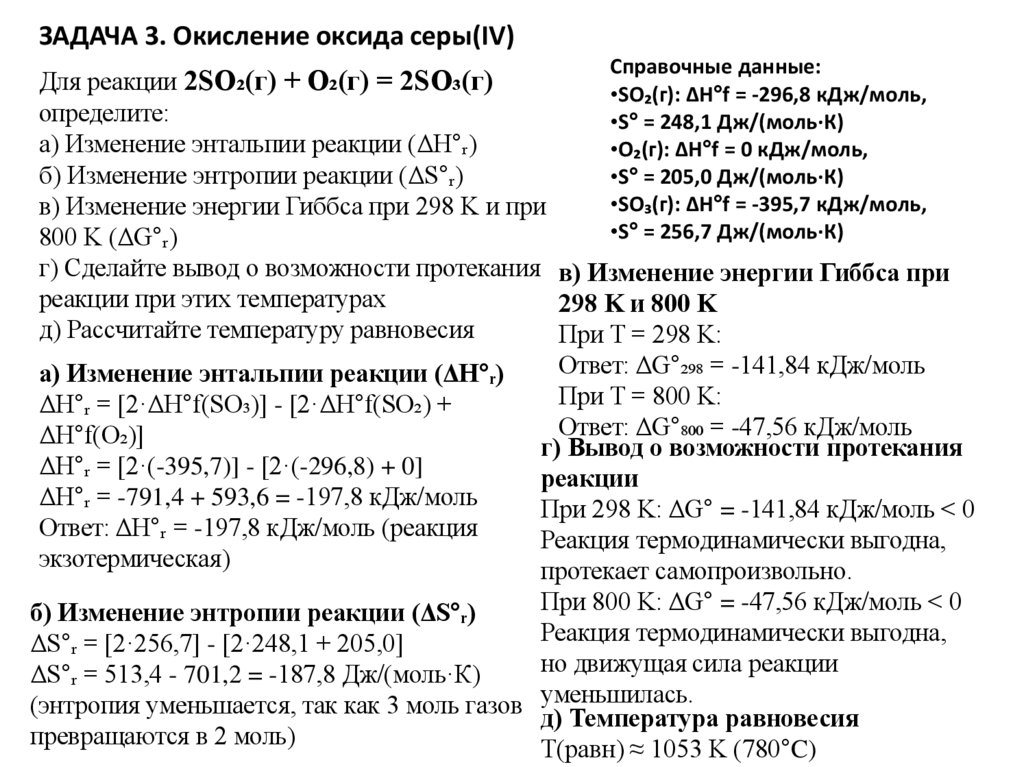 ЗАДАЧА 3. Окисление оксида серы(IV)Справочные данные: