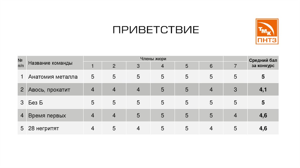 Члены жюриСредний