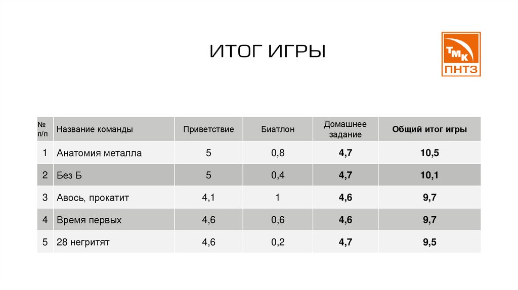 Общий итог игры
