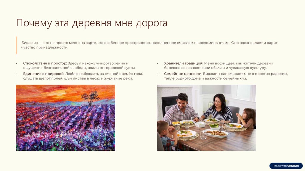 Почему эта деревня мне дорогаБишкаин — это не просто место на карте, это особенное пространство, наполненное смыслом и воспоминаниями. Оно вдохновляет и дарит