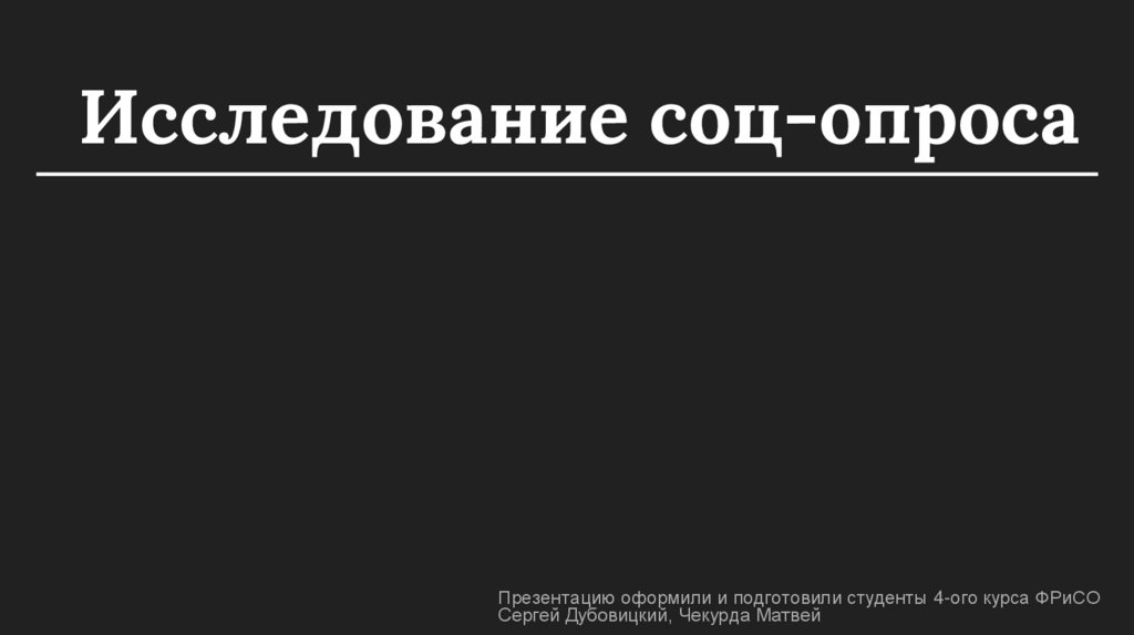 Исследование соц-опросаПрезентацию оформили и подготовили студенты 4-ого курса ФРиСО