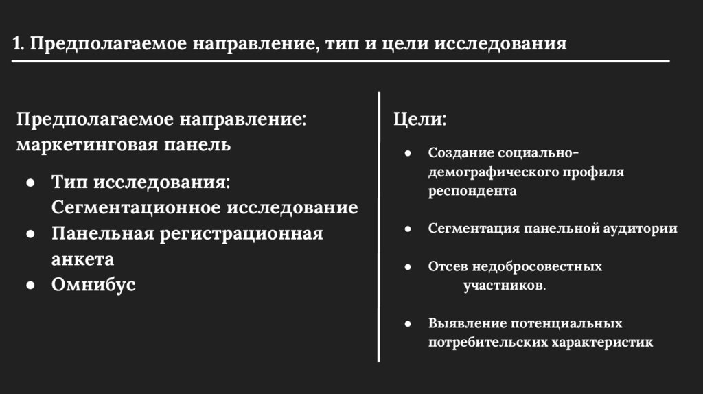 1. Предполагаемое направление, тип и цели исследованияПредполагаемое направление: