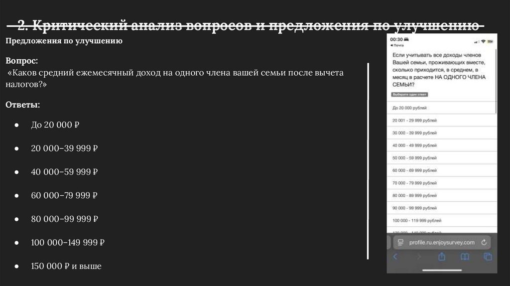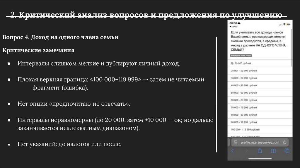 2. Критический анализ вопросов и предложения по улучшениюВопрос 4. Доход на одного члена семьи