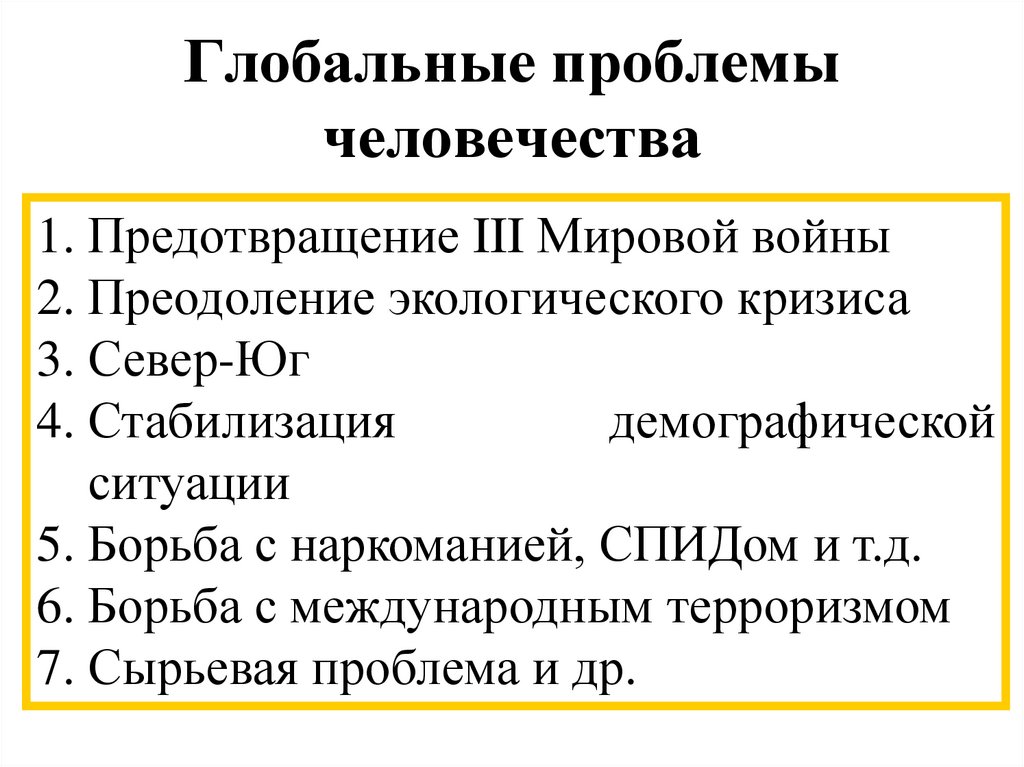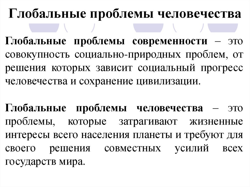 Глобальные проблемы современности – этосовокупность социально-природных проблем, от