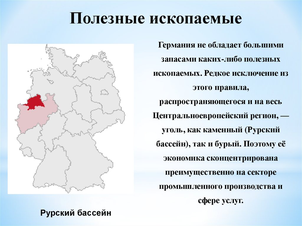 ЭкономикаФедеративная Республика Германия занимает ведущее место в мировой