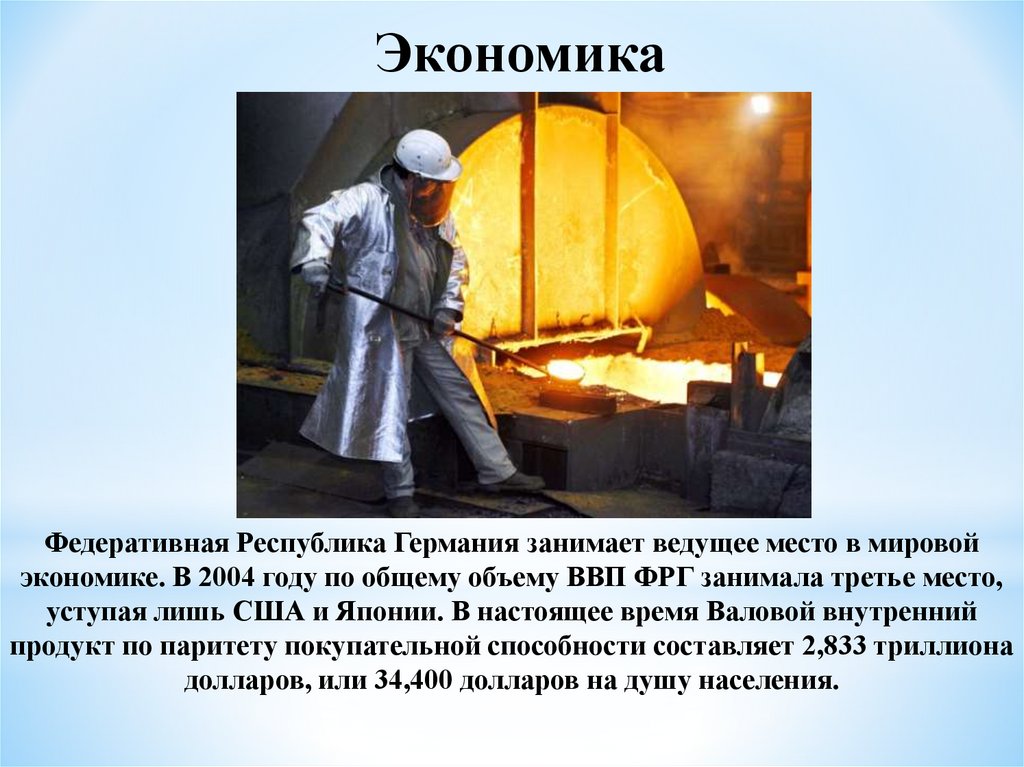 экономике. В 2004 году по общему объему ВВП ФРГ занимала третье место,